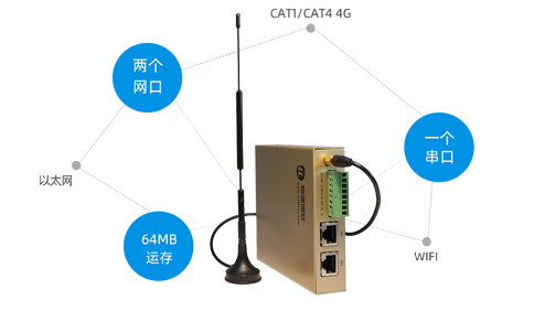 支持两个网口,一个串口、支持4G、WIFI、有线以太网等多种联网接入