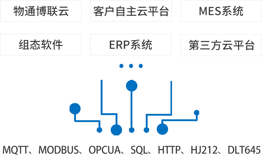 丰富云端协议:支持MQTT、HTTP、TCP、OPC UA、Modbus-TCP、SQL