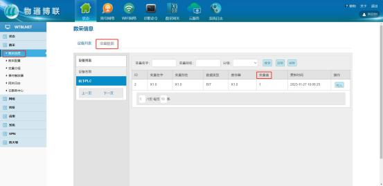 等待右下角弹出成功提示框后,点击“数采信息”->“变量数据”,即可在“变量值”一列查看采集结果。