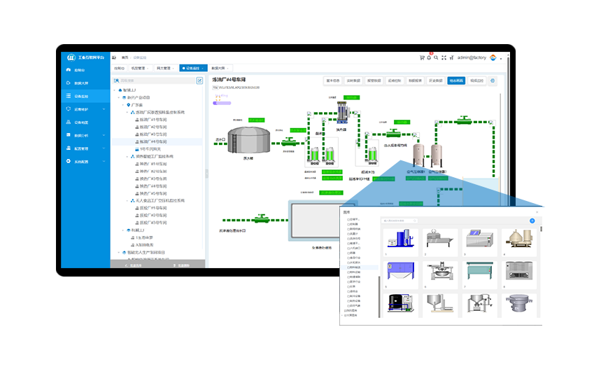 顺利获得将网关的数据接入到豪门国际工业数据云平台,可以实现对PLC的数据进行远程监控,顺利获得平台的组态功能可以自由绘制组态监控画面,实现电脑端和手机端的设备运行状态和工艺流程的可视化组态监控。